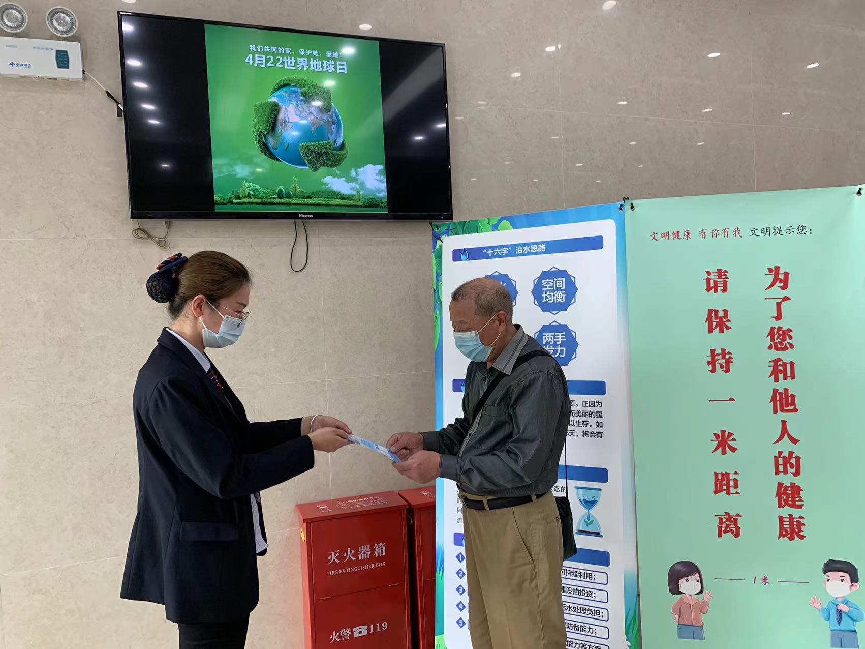 公司自發(fā)展以來,堅定不移踐行綠色發(fā)展觀念,積極開展公益宣傳活動,借世界地球日契機,客服部人員向前來辦理業(yè)務(wù)的客戶派發(fā)宣傳手冊,“今天是世界地球日,這里有一份節(jié)水用水小知識的手冊,我們邀請您參與節(jié)約水資源行動,希望您能向身邊的人也進行宣傳。”客服部人員向用戶介紹到。此次宣傳主要倡導(dǎo)廣大用戶提高節(jié)約用水、保護環(huán)境意識,得到了用戶的高度贊揚。