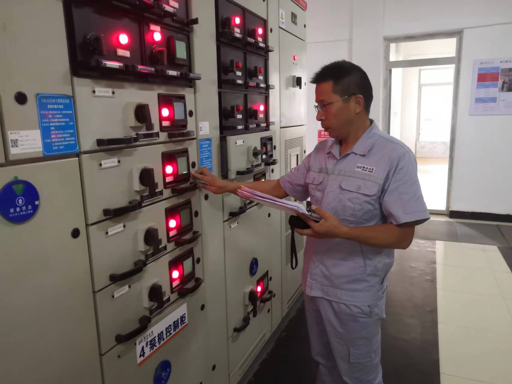 圖:設備維護,全面巡查保生產 設備維護,全面巡查保生產。機電設備部胡新國作為公司老員工,每一次假期值班都有他巡查的身影,他說:“越是假期,越不能松懈,我們必須對市民負責,更要對自己崗位負責!彼Y合各區域供水特點,周密部署,對供電線路、設備設施、自控系統進行全面檢查、維護,提前做好生產原料、維修備品備件儲備,做好供水設備設施的維護保養工作;安排人員對泵站、重點場所、設備加大巡查力度,增加巡查次數,切實做到“崗不離人,人不離崗”,確保能夠及時發現設備設施存在的隱患,做好上傳下達。