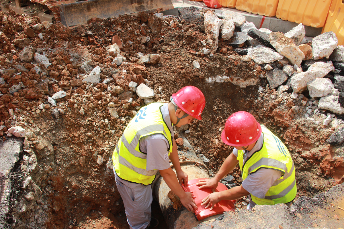 圖:全力搶修,確保管網供水安全 提高巡查,確保管網供水安全。管網負責人鄭文杰提到,“國慶期間我們將實行三邊倒值班制度,進行24小時值班,加強對供水管線的巡視力度,特別是對重點地區、重點用戶、重點單位周邊管線增加巡視頻率,做好巡視記錄,做到防患于未然,并成立應急搶修隊伍,針對可能出現的突發性影響供水情況,確保能第一時間趕赴維修現場,做到遇有險情馬上到位、遇到維修不遺余力,確保供水管網安全運行! 嚴格檢測,確保水質安全。針對節日期間用水量大的情況,重點加大對泵站進水口、出水口、管網水的水質檢測頻率,加強各環節的水質控制,及時采取有效措施,層層把關,保證水質合格。