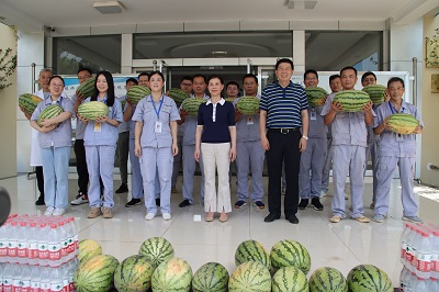 關(guān)愛職工,夏送清涼。為切實做好公司安全生產(chǎn)和職工防暑降溫工作,全面維護職工的健康權(quán)益,7月26日至27日,聯(lián)合水務(wù)咸寧區(qū)域總經(jīng)理陶瑛、咸寧聯(lián)合水務(wù)有限公司總經(jīng)理毛雄輝、咸寧聯(lián)合市政工程有限公司總經(jīng)理王冬青為公司一線職工送去西瓜、礦泉水等降溫物品,向高溫下堅守崗位的一線職工表示慰問。