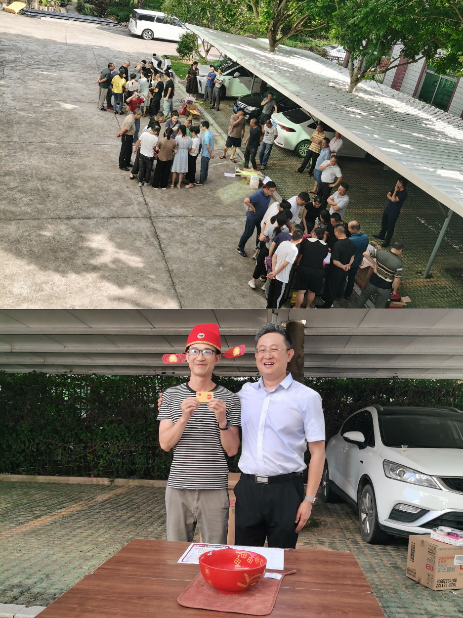 上午,進(jìn)行的是傳統(tǒng)項(xiàng)目拔河比賽。本次活動(dòng)共有四支隊(duì)伍參加比賽,分別是客服模塊代表隊(duì)、生產(chǎn)模塊代表隊(duì)、平和水務(wù)代表隊(duì)、綜合部門代表隊(duì)。比賽前,各參賽隊(duì)員摩拳擦掌、斗志昂揚(yáng)。隨著哨聲響起,參賽隊(duì)員們緊握長(zhǎng)繩,聚焦麻繩中點(diǎn),齊心協(xié)力、一同發(fā)力,展現(xiàn)出良好的精神風(fēng)貌。經(jīng)過激烈的角逐,客服模塊代表隊(duì)獲得冠軍,生產(chǎn)模塊代表隊(duì)獲得亞軍,平和水務(wù)代表隊(duì)獲得季軍。 下午,進(jìn)行的是員工期待已久的中秋博餅活動(dòng)。此次博餅活動(dòng)分為6個(gè)組,參賽的每個(gè)人都難以抑制激動(dòng)的心情,圍在桌子旁,摩拳擦掌,紛紛躍躍欲試,隨著各組骰子叮當(dāng)落下的清脆響聲,大家時(shí)而注目期盼,時(shí)而歡呼感嘆。幾番激烈角逐后,桌上的禮品悉數(shù)被大家收入囊中,各桌的狀元也逐個(gè)出爐。最后,各組狀元進(jìn)行狀元王中王角逐,博出了狀元王中王。