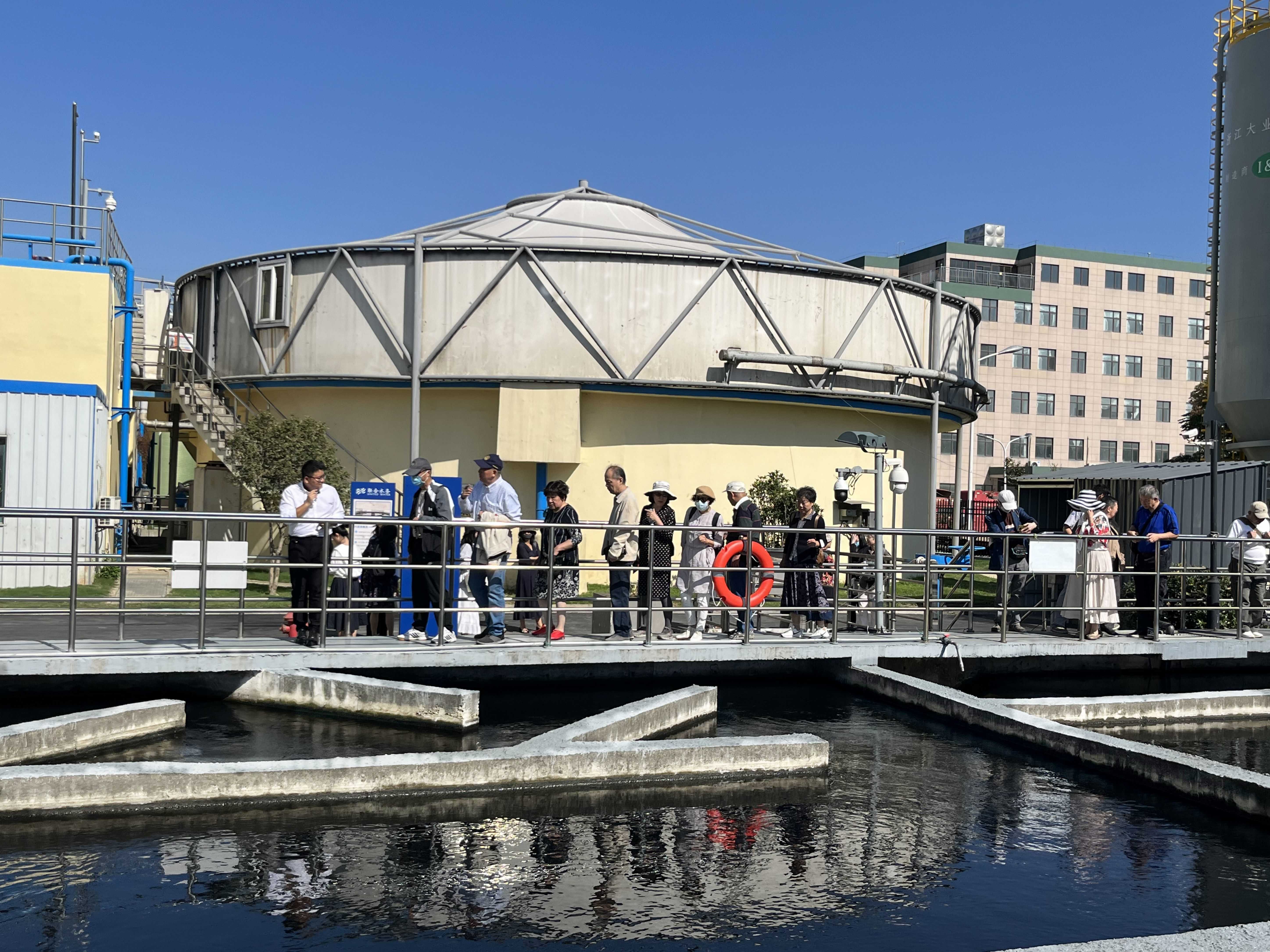 隨后在公司領導的帶領和介紹下,黃教授一行還參觀了污水池、化驗室等地方。通過觀察AAO生化池、CASS生物池、轉盤濾池、加氯消毒池池等,老師們詳細了解了污水處理的工藝流程和主要設備、廠區占地面積、服務范圍等。在現場,他們親自觀察了污水廠出水樣品的采集和分析過程,通過與未處理的污水相比較,處理后的水明顯清晰可見。目前公司污水日處理量為10萬噸/日,經處理后的污水達到《城鎮污水處理廠污染物排放標準》(GB18918-2002)一級A排放標準。