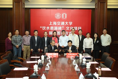 10月13日上午,聯合水務董事長俞偉景先生(交大1980級校友),與夫人晉琰女士(交大1985級校友)慷慨捐資,支持母校上海交通大學徐匯校區“飲水思源碑”修繕項目捐贈簽約儀式在徐匯校區總辦公廳隆重舉行。 俞偉景董事長與上海交通大學宣傳部部長胡昊簽署捐贈協議,俞偉景、晉琰夫婦捐贈貳佰萬元支持母校上海交通大學徐匯校區“飲水思源碑”修繕項目。交大黨委辦公室、校長辦公室、教育發展基金會、學指委、基建處、后勤保障處、安泰經濟與管理學院、媒體與設計學院等部處院系負責人參加了簽約儀式。