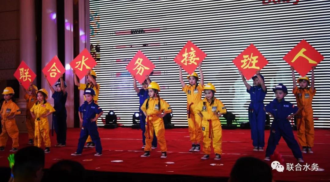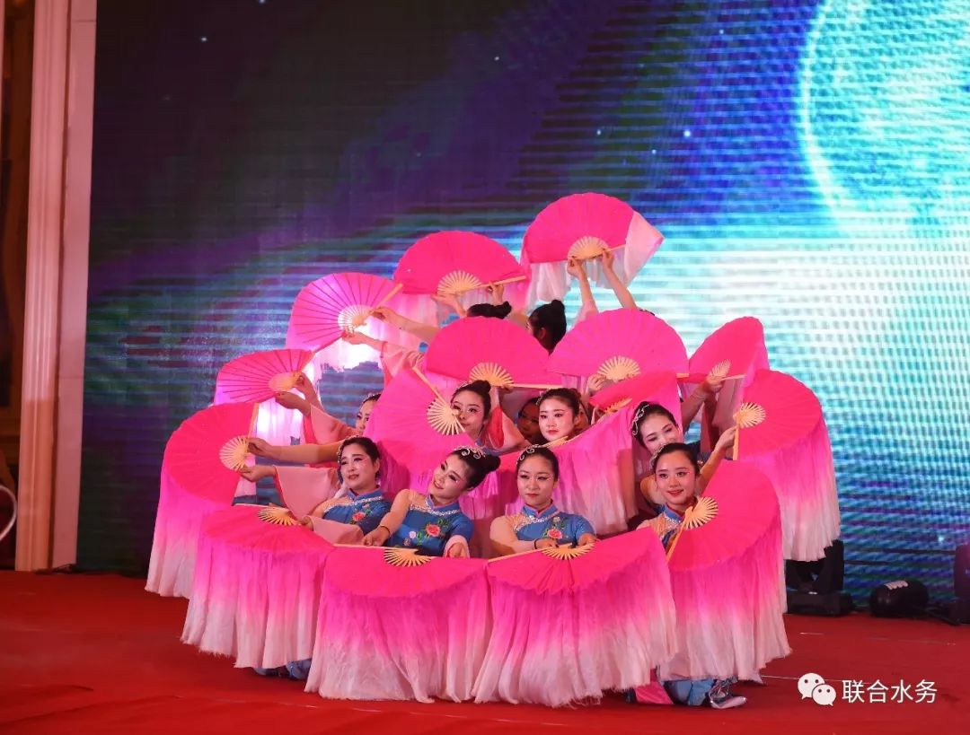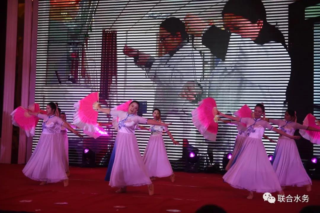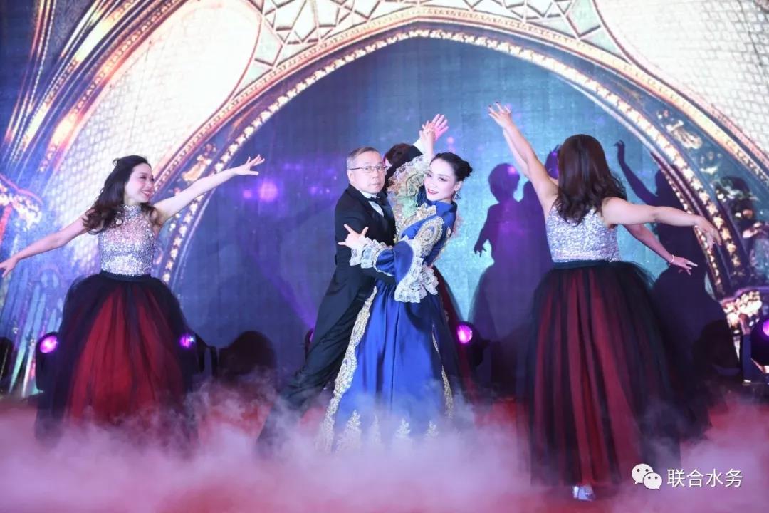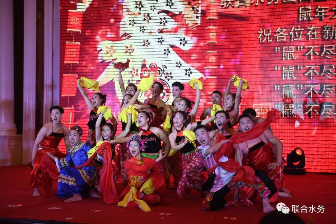 全集團2019年度37位先進員工上臺領獎 晚會的喜慶氣氛越來越濃烈,聯合水務員工們自編自演了五彩繽紛的文藝節目,現場仿佛一片歡樂的海洋!爸﹂g新綠一重重,小蕾深藏數點紅”,微醺拂面人欲醉,點點芳菲春漸濃。由宿遷公司帶來的大型舞蹈《海棠春色》,好似帶領大家游走在春的繽紛中,優美動人的舞蹈構筑出一幅花光明麗,遠山近水、鳥語蟬鳴的雅致唯美春色畫卷。山西區域表演的山西民間舞蹈《醋之韻》,將勞動人民在山西地肥水美的好風光下,釀醋、戀醋的勞動場景演繹的淋漓盡致,讓人迫不及待一品醋之韻味。明日燦爛輝煌依舊守望,今日艱巨的責任不敢怠慢。伴隨著一陣神秘的音樂,一顆美麗的星球出現在觀眾眼前,音樂漸漸沉重,這顆美麗的星球即將滿目瘡痍,就在所有人都陷入哀痛和沉思之時,畫風突變,藍天白云,河流清澈,鳥飛魚躍,臺上演員的舞蹈也隨之歡快起來,這是由隨州公司表演的《碧水藍天》,展示了聯合水務千方百計惜水、愛水、護水的責任擔當。歌聲裊裊辭舊歲,舞姿翩翩賀新年。瑞昌公司的節目《祥瑞昌盛》通過翻飛的彩扇,跳動的舞步,舞出吉祥昌盛的日子;歡快的節奏,活潑的舞姿,靈動的身軀,山西區域帶來的《歡歡喜喜過大年》將現場氣氛再掀高潮;而三門峽公司帶來的舞蹈《紙扇書生》,將晚會氣氛帶入只屬于中國人的風趣儒雅,熱情洋溢中;一曲耳熟能詳的《草原的月亮》頓時開啟了北國風光無限好的境界,悠揚的歌聲,婀娜的舞蹈,仿佛帶領大家進入到了最美的夢鄉;若說曼妙舞姿已讓全場觀眾沸騰,那由桐鄉公司表演的相聲《長壽論》,更是讓大家捧腹大笑。 萬里之船,成于羅盤。聯合水務集團的乘風破浪、奮勇直前,正是因為集團領導和員工的同心同德、同甘共苦。由集團領導班子帶來的歌舞串燒《舞林大會》點燃全場,平時工作中威風凜凜的領導班子,突然化身成為優雅紳士的舞者,風度翩翩;引吭高歌的歌者,熱情高昂。現場觀眾手中揮舞的熒光棒與動人的華爾茲融合為一,如夢如幻,韻味十足,給觀眾帶來別翻視覺享受和聽覺享受,贏得現場觀眾的陣陣掌聲和喝彩。