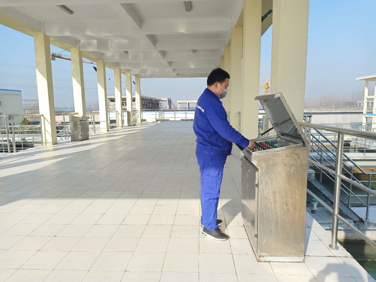 [ 聯(lián)合水務(wù)工作人員進(jìn)行嚴(yán)格的體溫監(jiān)測(cè) ] 疫情期間,污水生產(chǎn)也備受關(guān)注。集團(tuán)所屬桐鄉(xiāng)申和水務(wù)公司、隨州聯(lián)合玉龍公司、瑞昌金達(dá)萊環(huán)保公司、宿遷耿車(chē)污水公司、托克托聯(lián)合水務(wù)公司等污水公司也在集團(tuán)總部部署與指導(dǎo)下,積極響應(yīng)國(guó)家和地方疫情防控政策,嚴(yán)格落實(shí)好相關(guān)制度,切實(shí)加強(qiáng)設(shè)備管理,增加次氯酸鈉消毒藥劑投加量。每天對(duì)辦公區(qū)域及生產(chǎn)運(yùn)行區(qū)域進(jìn)行定時(shí)消毒維護(hù)檢查,確保工作環(huán)境安全可靠。同時(shí)為工作人員提供口罩、消毒水等保障用品,在公司群中定時(shí)定期匯報(bào)個(gè)人健康狀況,普及防疫知識(shí)。防疫、生產(chǎn)兩手抓,保障了疫情防控期間所在城市良好的水環(huán)境秩序。 隨著新冠病毒肺炎疫情發(fā)展,集團(tuán)指導(dǎo)各運(yùn)營(yíng)公司不斷調(diào)整復(fù)工時(shí)間及人員,目前聯(lián)合水務(wù)集團(tuán)日均供水能力達(dá)180萬(wàn)噸/日,日處理污水能力80萬(wàn)噸/日,有力地保證了各運(yùn)營(yíng)公司服務(wù)城市的安全穩(wěn)定供水和污水達(dá)標(biāo)排放。