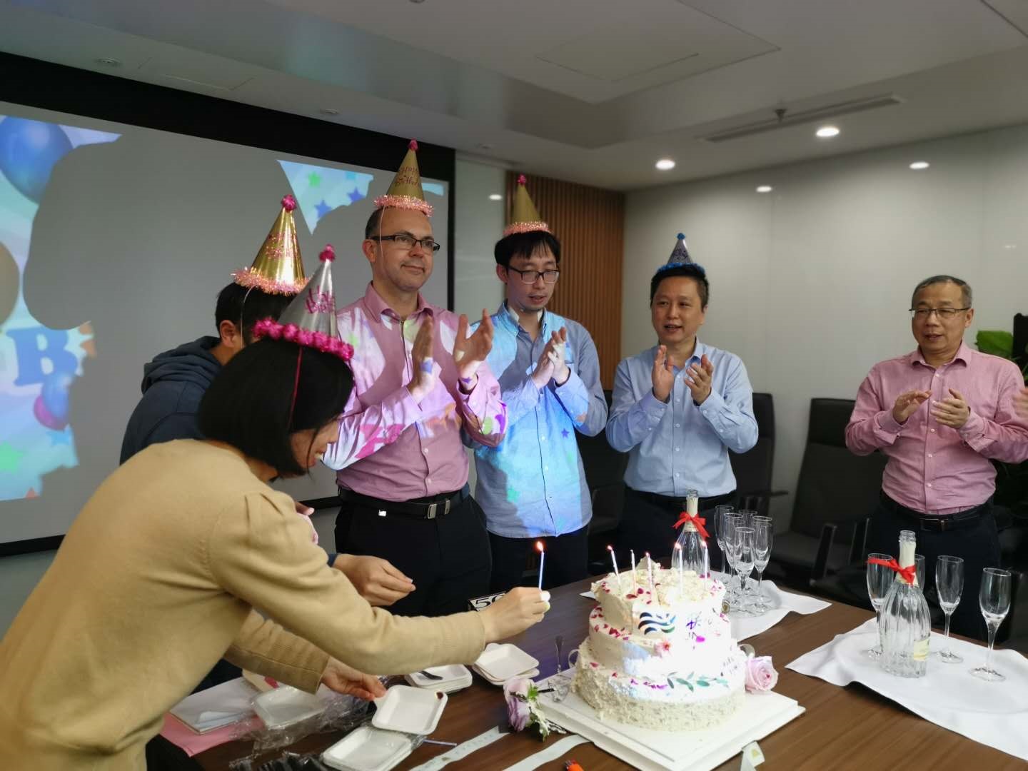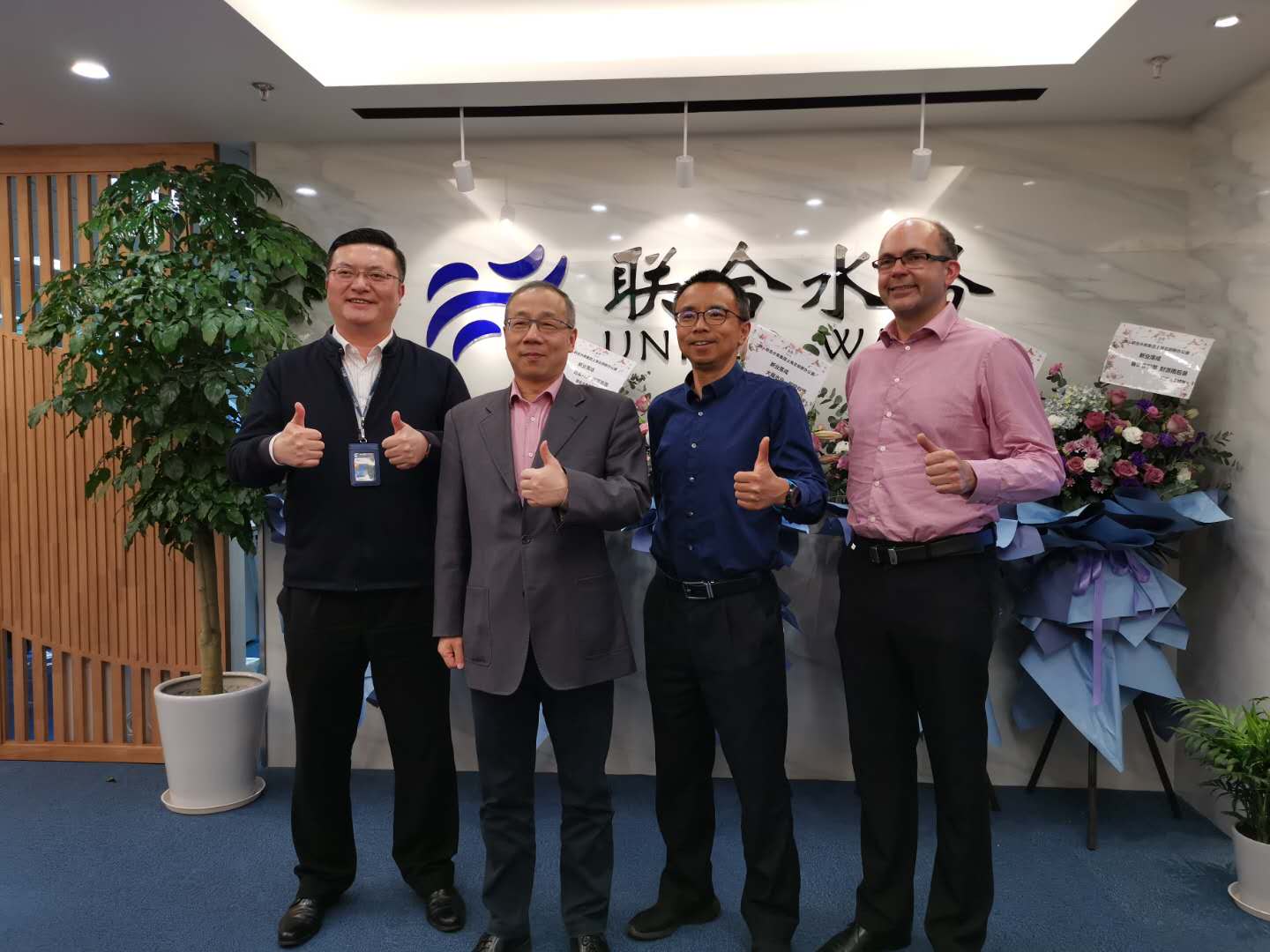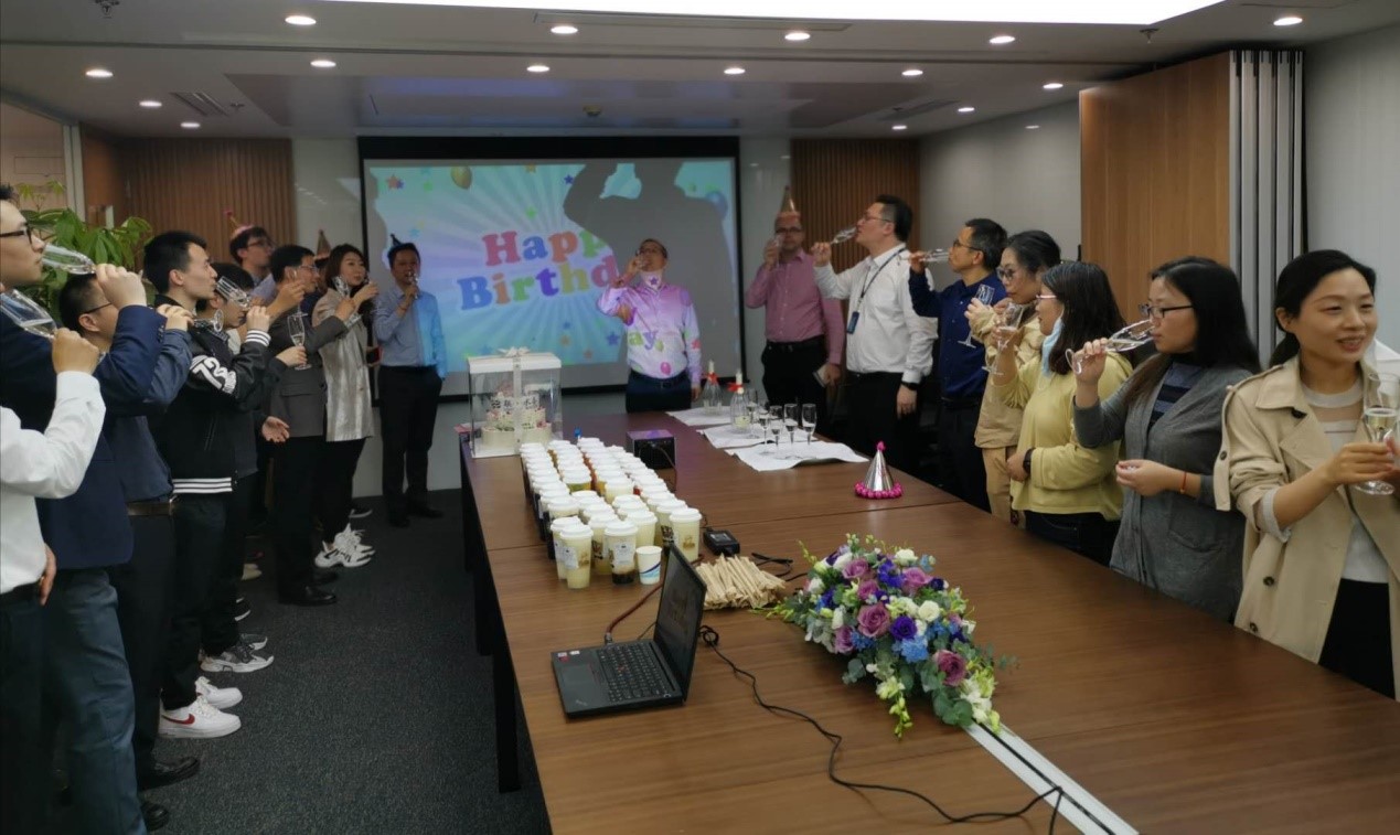 最是一年春好處,絶勝花柳滿門廳。伴著和煦的春風(fēng),趁著“五一”的來臨,聯(lián)合水務(wù)集團總部新辦公室落成慶典隆重舉行,同期舉辦2020年一季度總部員工集體生日慶祝活動。 2020年4月29日下午,活動在聯(lián)合水務(wù)集團上海總部新增新裝的南豐城16樓辦公室舉行。聯(lián)合水務(wù)集團董事長兼總裁俞偉景先生、聯(lián)合水務(wù)集團高級副總裁劉猛先生、聯(lián)合水務(wù)集團高級副總裁陳樵先生、聯(lián)合水務(wù)集團高級副總裁兼CFO James Beeson先生、上海總部全體常駐員工、孟加拉項目公司部分員工共同參與了此次慶典暨生日慶祝活動。