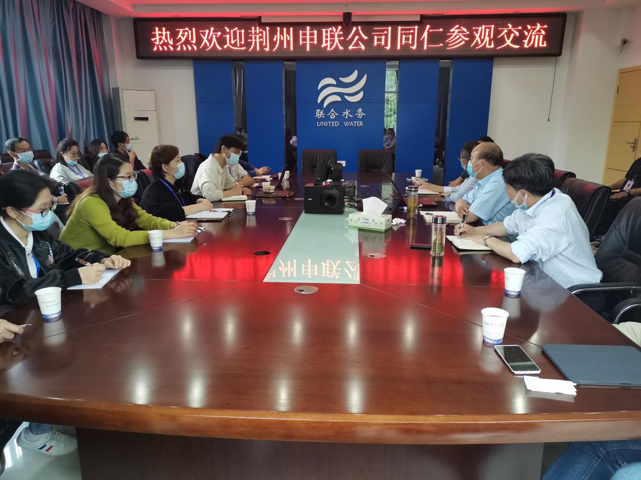 5月14—15日,聯合水務集團旗下荊州申聯環境科技有限公司、荊州申聯水務有限公司(以下簡稱“荊州項目公司”)人事行政副總經理劉斌帶領兩公司管理人員,來到咸寧聯合水務有限公司參觀交流。咸寧項目公司執行董事夏承光、總經理毛雄輝等領導對荊州項目公司同仁的到來表示熱烈歡迎,并進行了熱情接待。