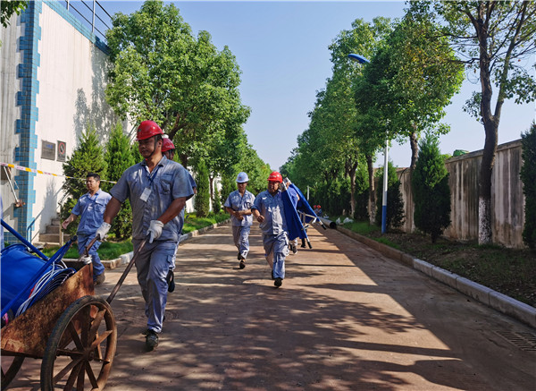 安全生產(chǎn)是企業(yè)生存發(fā)展之根本。 五黃六月,烈日炎炎、暑氣逼人,有毒有害氣體極易積聚,自6月份以來,國內(nèi)多家化工企業(yè)以及與化工有關(guān)的污水處理企業(yè)等多次發(fā)生有限空間作業(yè)中毒窒息事故,有限空間作業(yè)安全事故已成為化工類企業(yè)的重大安全隱患。作為荊州經(jīng)濟技術(shù)開發(fā)區(qū)唯一的工業(yè)污水處理專營企業(yè),為有效預(yù)防和避免公司生產(chǎn)經(jīng)營過程中各類有限空間作業(yè)事故的發(fā)生,保證安全穩(wěn)定的生產(chǎn),建立緊急情況下迅速、科學(xué)、高效地組織事故搶險、救援和應(yīng)急機制,減少事故的影響和損失,杜絕類似安全事故的發(fā)生,8月27日,聯(lián)合水務(wù)荊州項目公司組織開展了有限空間作業(yè)事故應(yīng)急演練。公司總經(jīng)理許應(yīng)濤、人事行政副總經(jīng)理劉斌等領(lǐng)導(dǎo)全程參與演練,充分顯示了公司對安生生產(chǎn)的高度重視。 演練前,工藝技術(shù)經(jīng)理王臣帶領(lǐng)生產(chǎn)部門全體員工進行了有限空間作業(yè)安全培訓(xùn),對事前制定的演練預(yù)案進行了詳解及分組討論,并針對7月份進行的一次預(yù)演訓(xùn)練中出現(xiàn)的問題進行了總結(jié)和方案的改進,應(yīng)急小組再次認真確定演練方案后,仔細研究各個應(yīng)急處理流程,分配模擬任務(wù)及安排崗位角色,讓全體參與人員熟知演練過程并牢記于心。