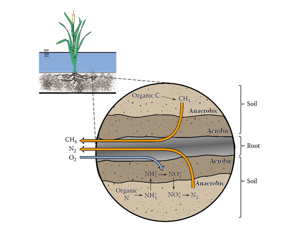 水生植物對河湖水環境本身起到極為關鍵的凈化效果,其機理主要為:一,同化吸收,富集河湖沉積層中氮磷等富營養物質;二,磷的沉降與固定,通過提高沉積層上覆水的溶解氧、氧化還原電位及pH值,來促進上覆水中可溶性磷的沉降;三,氮的遷移與轉化,通過根際效應及植物代謝作用使根系及莖葉表面形成富氧-缺氧的氧化還原微環境,使氮循環微生物(反硝化、硝化及氨化細菌)同時出現并發揮作用,含氮有機物經異養菌的氨化作用轉化成氨氮,再通過硝化作用轉變為亞硝酸鹽和硝酸鹽態氮,最終通過反硝化作用轉化為氮氣從水中排出,以沉水植物凈化效果為例,較之于未種植沉水植物區域,硝化、反硝化細菌菌群數量約增加10-100倍;四,生態清淤,通過水生植物同化吸收及根際微生物效應,實現沉積層中有機質的去除及礦化,進而逐年削減有機質。