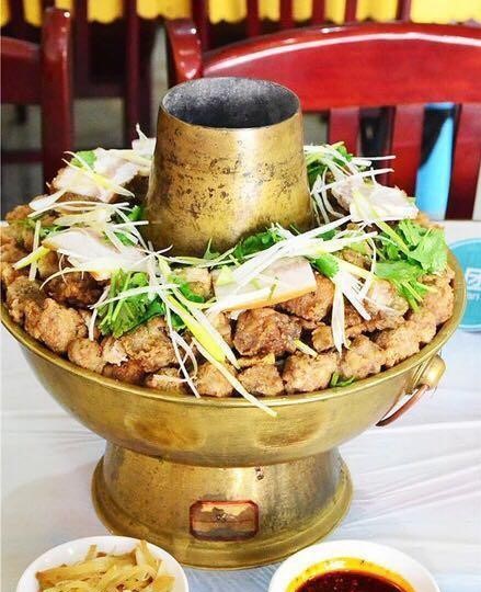 (圖:紅紅火火) 絳州銅火鍋 “新絳火鍋”有著悠久的歷史,在當地百姓心中占據重要位置,一鍋熱氣騰騰、紅紅火火的“新絳火鍋”,是新絳人招待親友、闔家共聚的不二之選。 新絳火鍋保留了最早銅火鍋的原汁原味,以味鮮湯美、入口咸香、回味悠長著稱。該火鍋采用極富古絳州特色的銅火鍋為器皿,以木炭為燃料、熬制的老湯為湯料,選用經過煮、炸、燉、蒸的五花肉片、排骨、酥肉、油炸肉丸、粉條、海帶、豆腐、白菜等菜肴,經過科學搭配,不僅營養豐富,而且美味可口。與其他火鍋相比,絳州銅火鍋不僅口感細膩、味道鮮美,外加經濟實惠,而且其內含的銅、鋅等微量元素正為人體所需。銅火鍋鍋腹大,能容木炭多,且不飛灰,底部的鐵箅子能通風供氧,保證炭火燃燒,鍋內總是一種沸騰狀態。人們從頭吃到尾,菜、肉都是熱騰騰的。新絳人吃銅火鍋,都喜歡點一個饅頭。在銅火鍋燒得火旺時,把饅頭放在出火口,這樣不僅能調控火力,還能烤出焦黃脆口的饃片。每人分得一塊,就著菜肉吃,更是滿口余香。 如今,“新絳火鍋”的招牌在太原、臨汾、運城都隨處可見,深受當地食客喜愛。