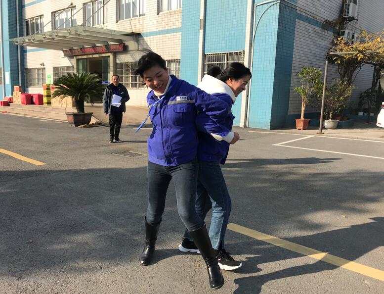 第四個項目是“螃蟹背西瓜”:兩名參賽選手背對背站立,用背夾球,步調一致向前進,若途中球掉落或用身體其他部位觸碰球則須返回起點重新開始。參賽的巾幗須眉們斗志昂揚、分秒必爭、奮力奪冠,觀賽員工滿腔熱忱的喝彩鼓勁兒。葉向上、廖小康隊以長腿的絕對優勢一路高歌猛進,率先沖出終點,贏得陣陣喝彩。