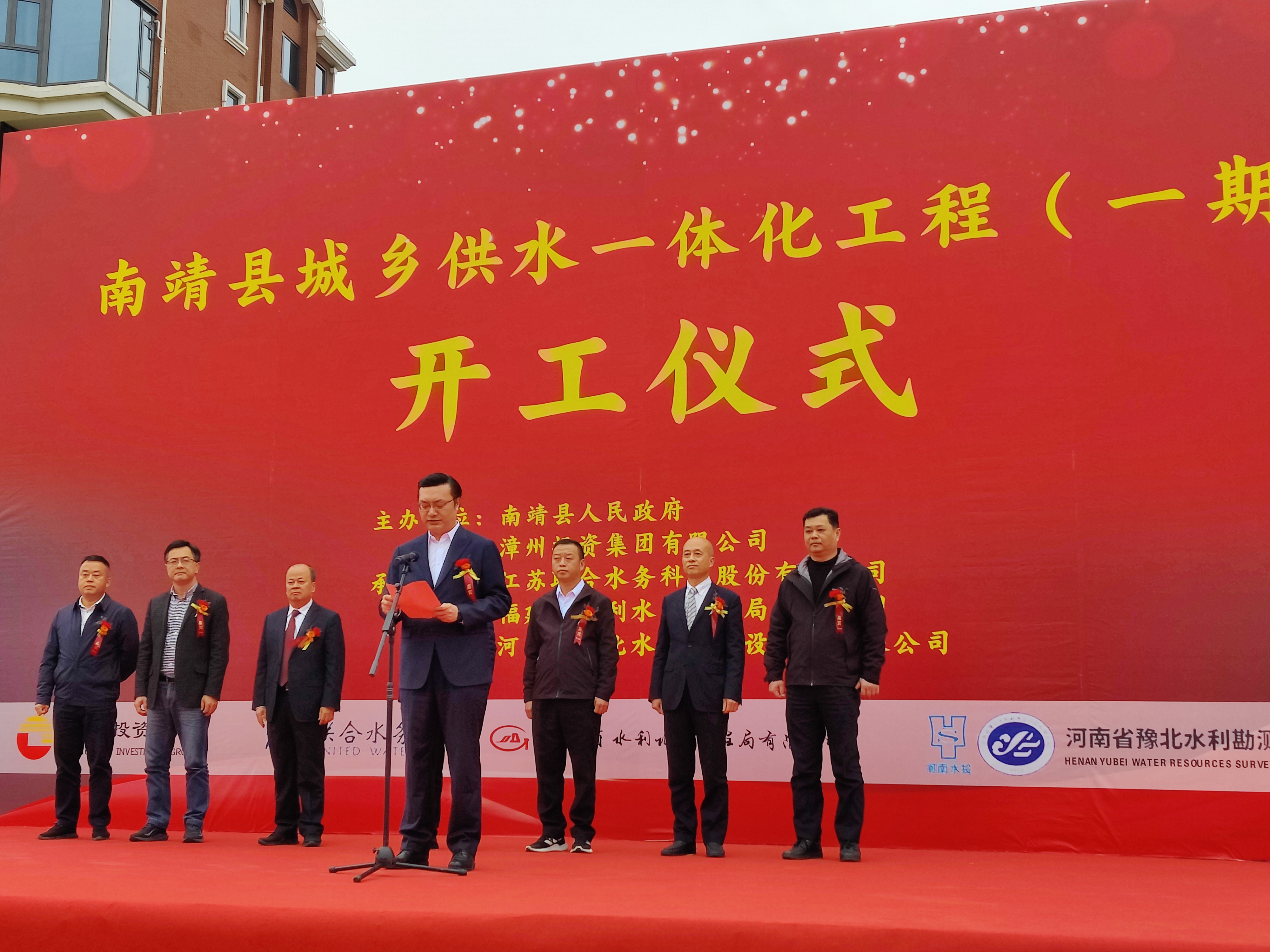 12月27日,由江蘇聯(lián)合水務(wù)科技股份有限公司牽頭、福建省水利水電工程局有限公司及河南省豫北水利勘測(cè)設(shè)計(jì)院有限公司為成員單位共同組成的聯(lián)合體中標(biāo)的項(xiàng)目—福建省漳州市南靖縣城鄉(xiāng)供水一體化工程(一期)(EPC+O)開工儀式在漳州市南靖縣隆重舉行。南靖縣縣長(zhǎng)蔡銘泉、副縣長(zhǎng)簡(jiǎn)偉翔、漳州投資集團(tuán)有限公司董事長(zhǎng)莊偉廉、江蘇聯(lián)合水務(wù)科技股份有限公司高級(jí)副總裁劉猛、高級(jí)副總裁陳樵等出席本次開工儀式。