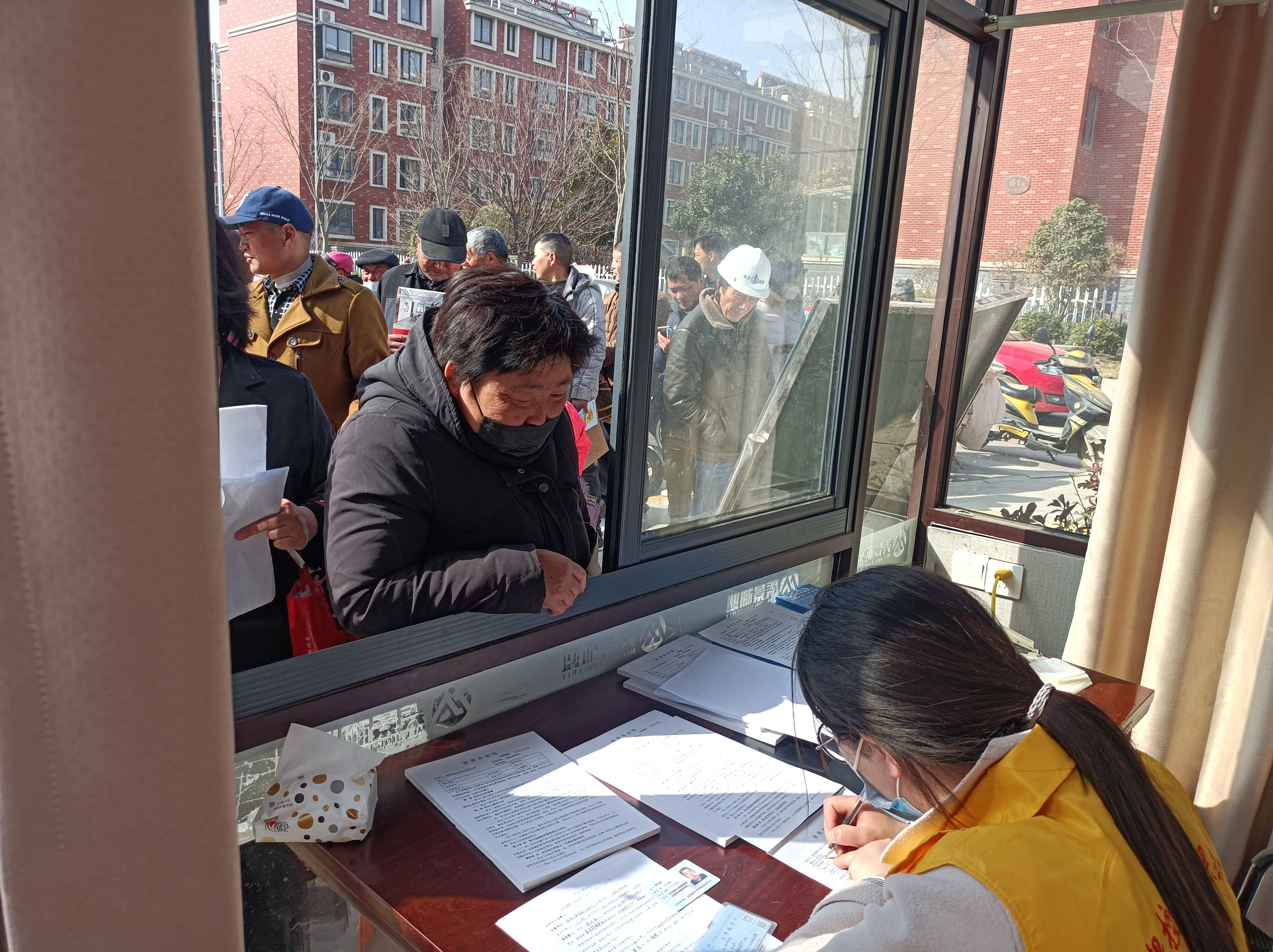 圖:工作人員為居民集中辦理用水開戶現場