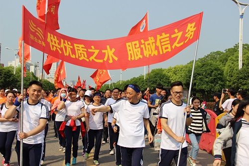 4月15日上午,咸寧聯合水務有限公司組織30名員工,在人事行政副總經理張偉華的帶領下參加咸寧城區第28屆春季健步跑暨2017咸寧微型馬拉松賽活動。 上午9時,陽光明媚,微風和煦,起跑點人潮洶涌,氣氛熱烈,公司旗手高舉“供優質之水,服誠信之務”和“咸寧聯合水務有限公司”的旗幟組成方陣整裝待發。隨著主持人一聲令下,各參賽者朝著終點方向次第前行,開始長達5公里的快樂健身賽跑。 參加活動的員工,平時工作都是在辦公室里忙碌,沒有多少時間跑步健身,有的年紀已過中年,身體素質下滑,所以開跑不大一會,疲勞感陣陣襲來,拉起了風箱,感覺難以繼續下去了,但大家在高高飄揚的“咸寧聯合水務有限公司”旗幟帶領下,以極高的精神意志力,克服身體的疲累咬牙前行,在開跑半個小時左右,大家都按賽跑路線順利到達終點,沒有一人掉隊。 此次活動不僅是身體上的考驗,更是心理上的考驗,它給我們的感受遠比成績要豐富的多,體現了咸寧聯合水務人努力拚搏、誓不服輸的運動精神,展示了聯合水務人的昂揚士氣與蓬勃活力。